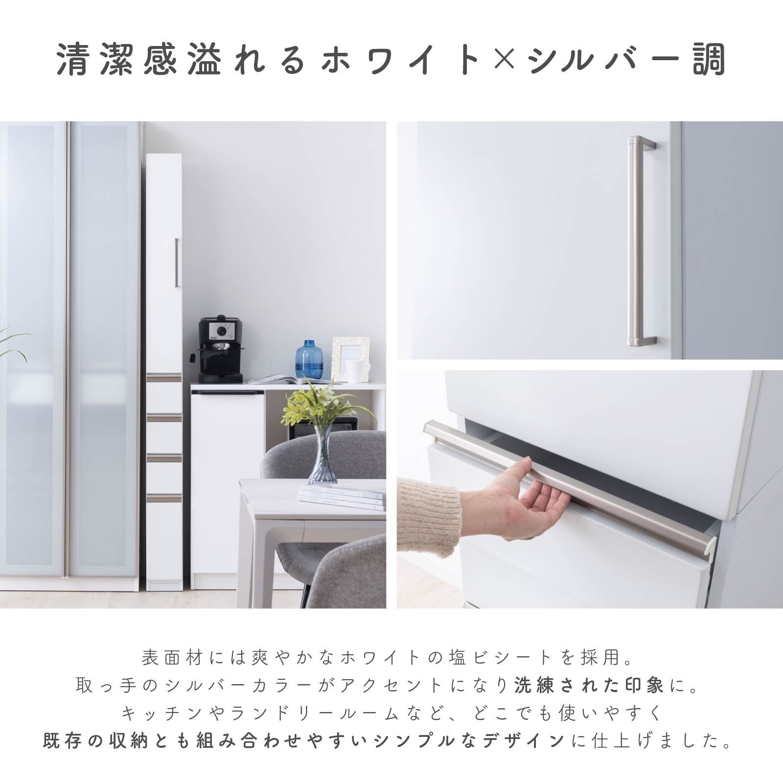 隙間収納 キッチン収納 隙間 収納 チェスト 幅25 扉収納 引出し 高さ180cm ホワイト 白 ハイタイプ 大容量 可動棚 扉左右切替可能 本体完成品 スリム 薄型 7032