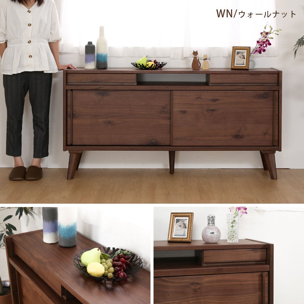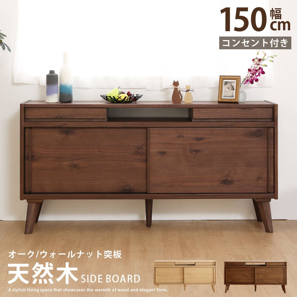 サイドボード リビングボード 幅 150 cm 可動棚 耐震ダボ 棚 キャビネット オーク ウォールナット 突板 引き戸 コンセント付き コード ベージュ ブラウン 木製 おしゃれ 収納 脚付き カウンター リビング 飾り 幅150 背面化粧 北欧 間仕切り sg0914