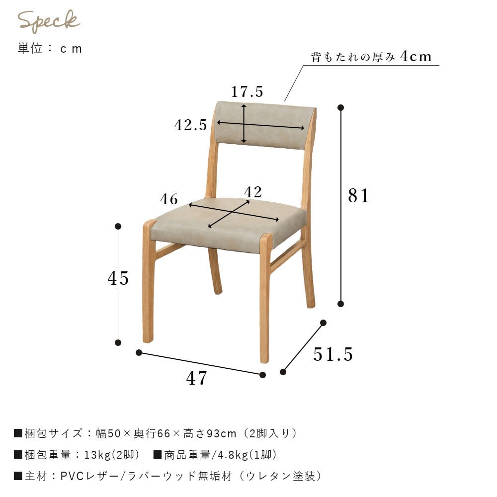 幅47×奥行51.5×高さ81×座面高さ45cm(4.8kg※1脚)