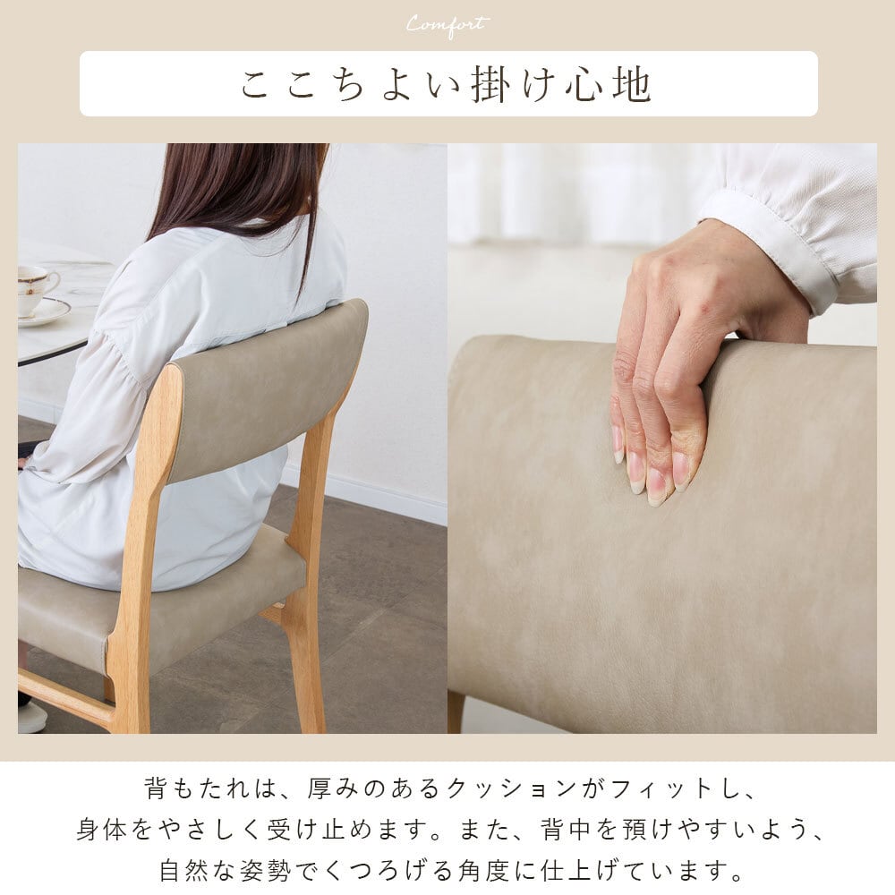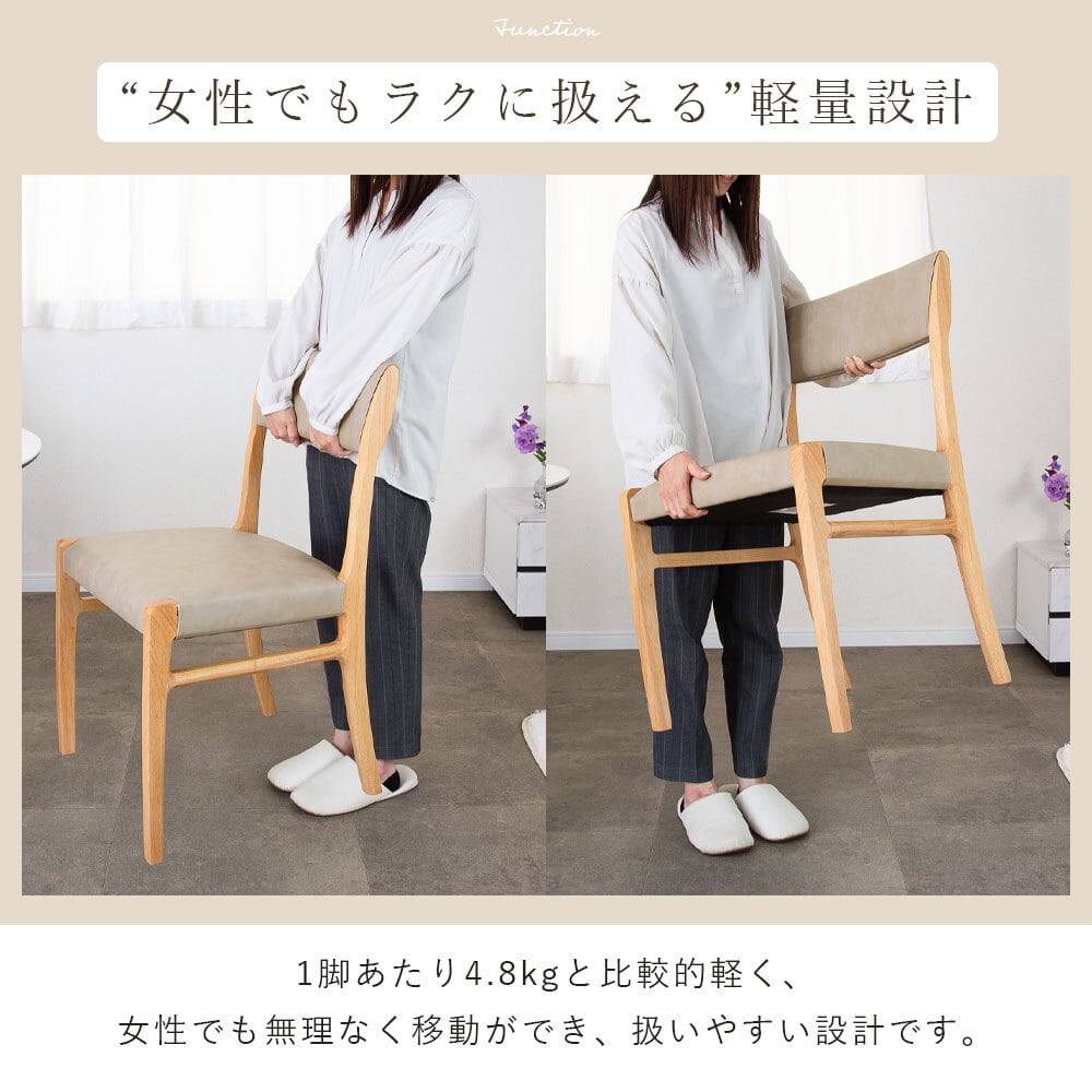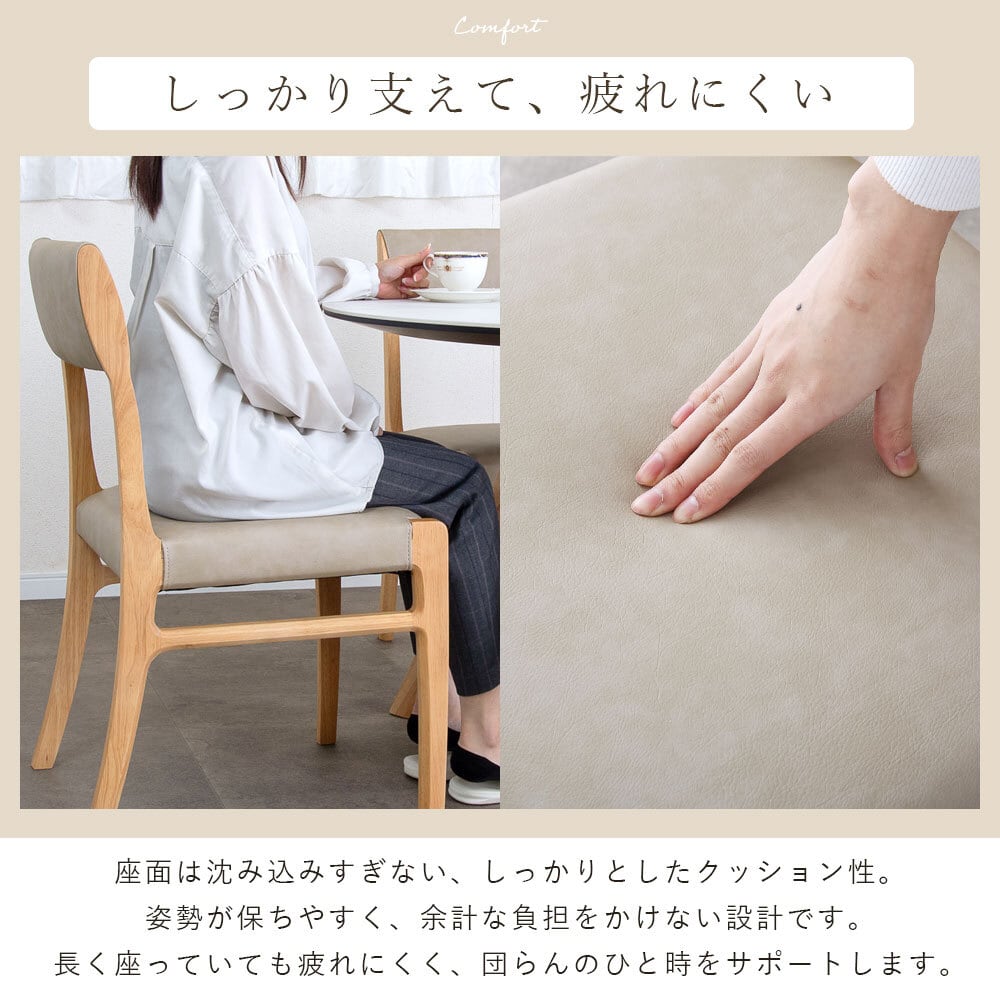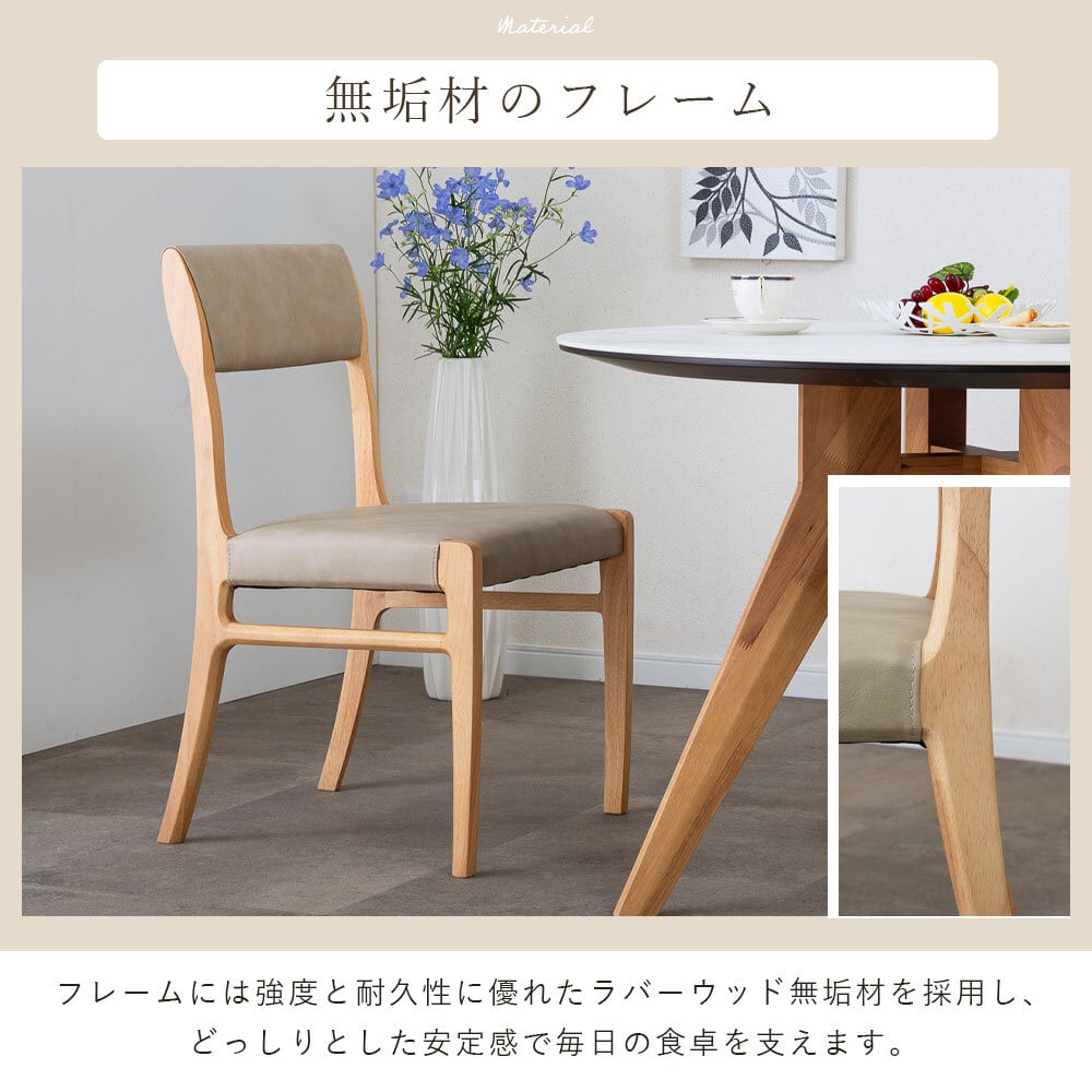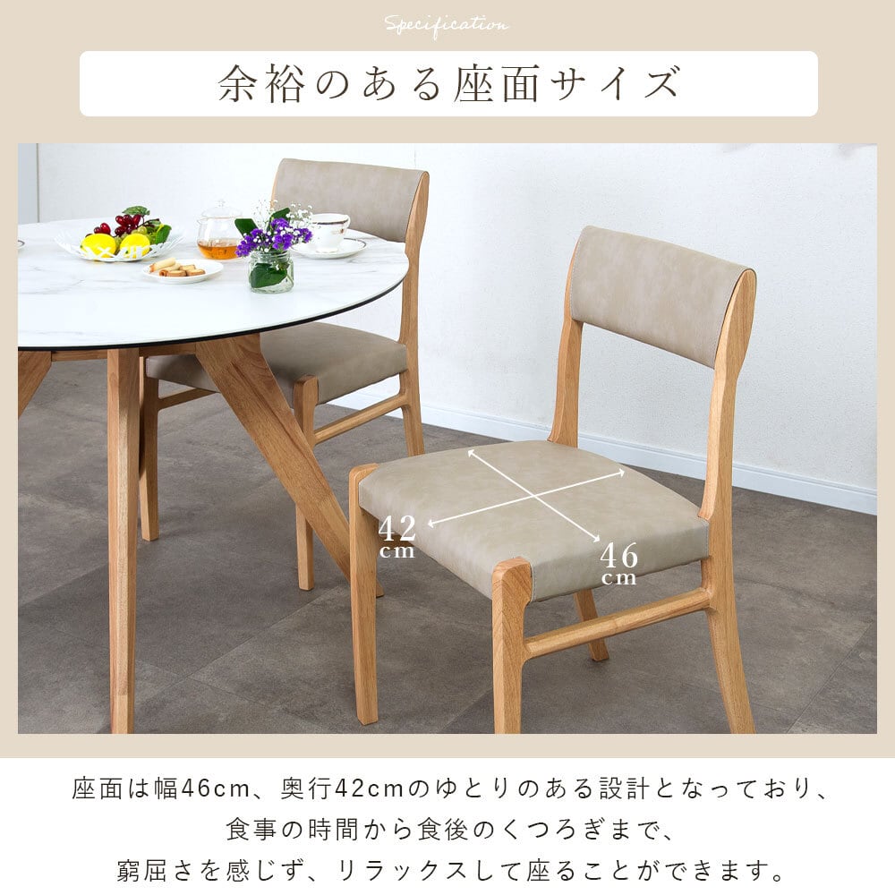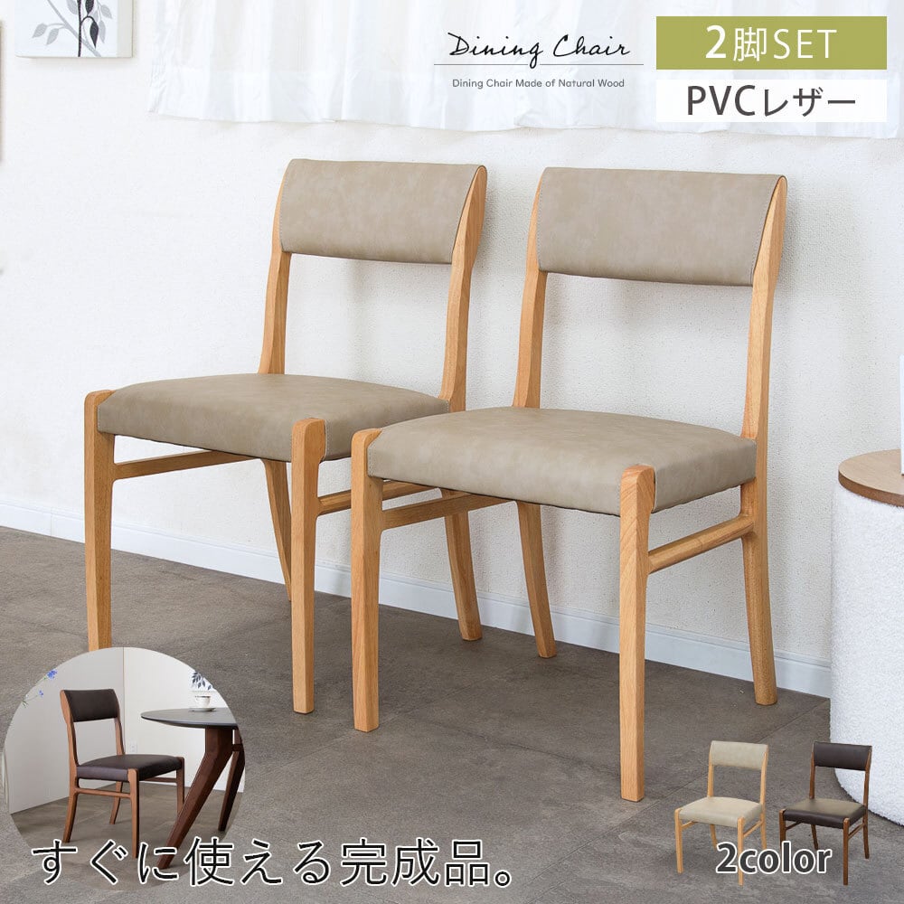 【15%OFFクーポンコード:F320】ダイニングチェア 2脚セット完成品 幅47 座面高45cm アームレス おしゃれ シンプル ラバーウッド 無垢材 PVC 合成皮革 北欧 チェアー 2脚 天然木 食卓椅子 2セット ナチュラル モダン sg0855