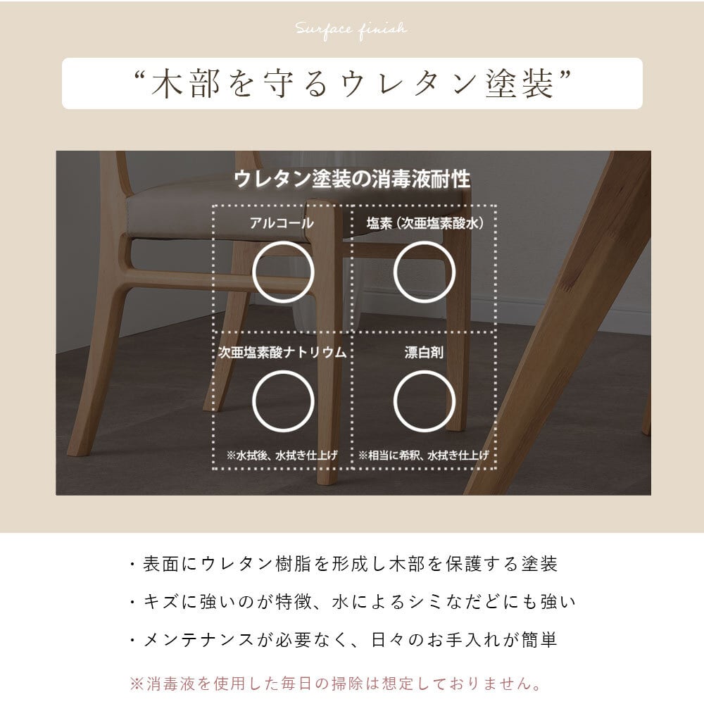 主材:ラバーウッド無垢材(ウレタン塗装)