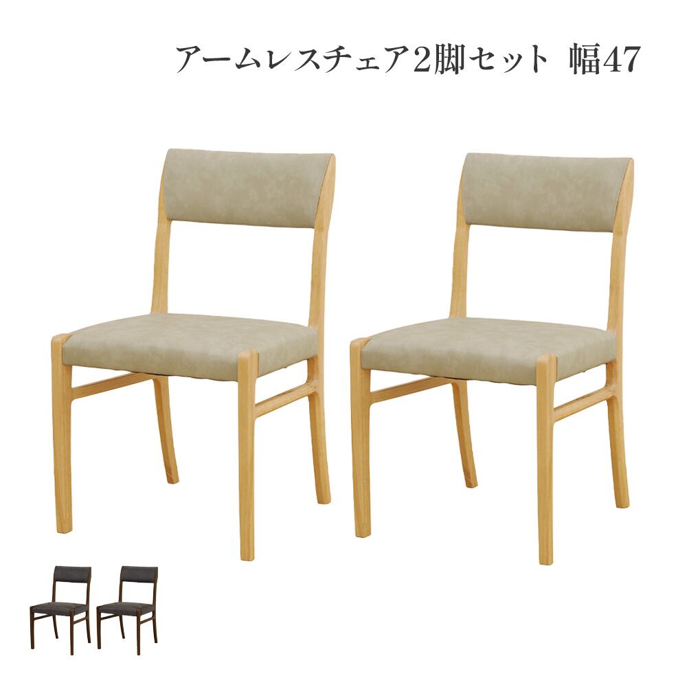 ダイニングチェア 2脚セット完成品 幅47 座面高45cm アームレス おしゃれ シンプル ラバーウッド 無垢材 PVC 合成皮革 北欧 チェアー 2脚 天然木 食卓椅子 2セット ナチュラル モダン sg0855