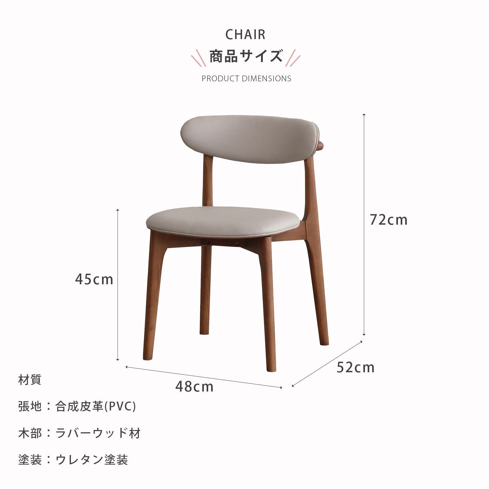 チェア:幅48cm×奥行き52cm×高さ72(座面高45)cm(約6.1kg)