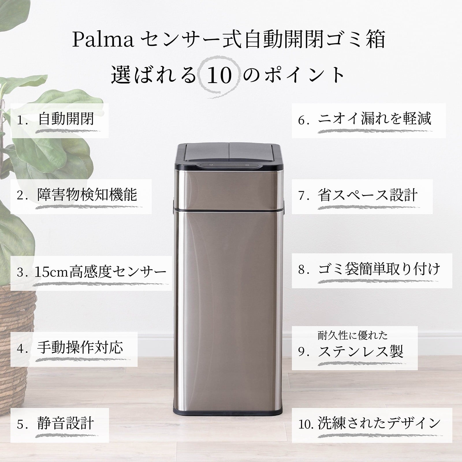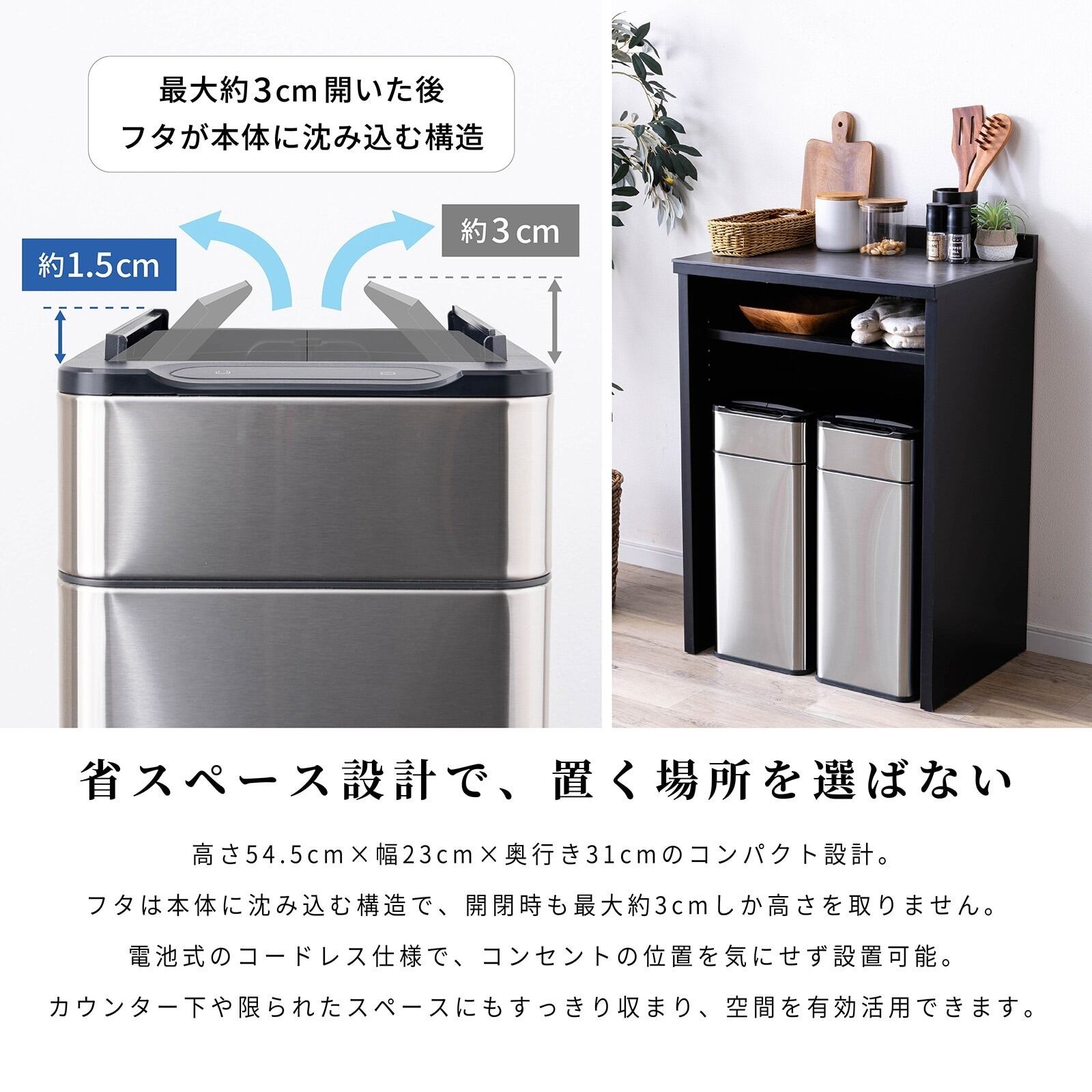 【15%OFFクーポンコード:F320】ゴミ箱 自動開閉 ステンレス 40L ゴミ袋対応 センサー式 ダストボックス 新生活 pa0001