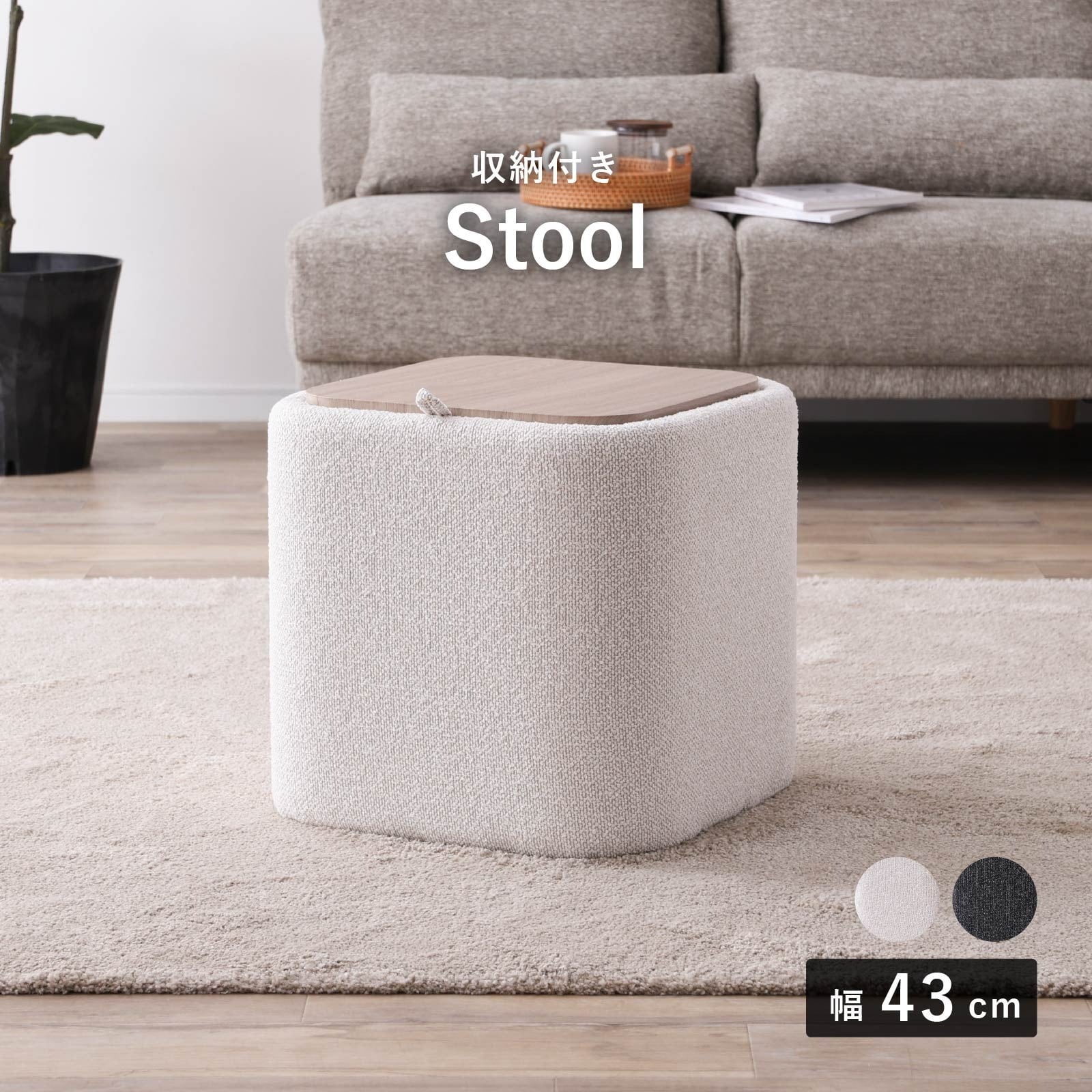 【15%OFFクーポンコード:F320】スツール 幅43cm コンパクト サイドテーブル 収納 ファブリック インテリア 新生活 st0006
