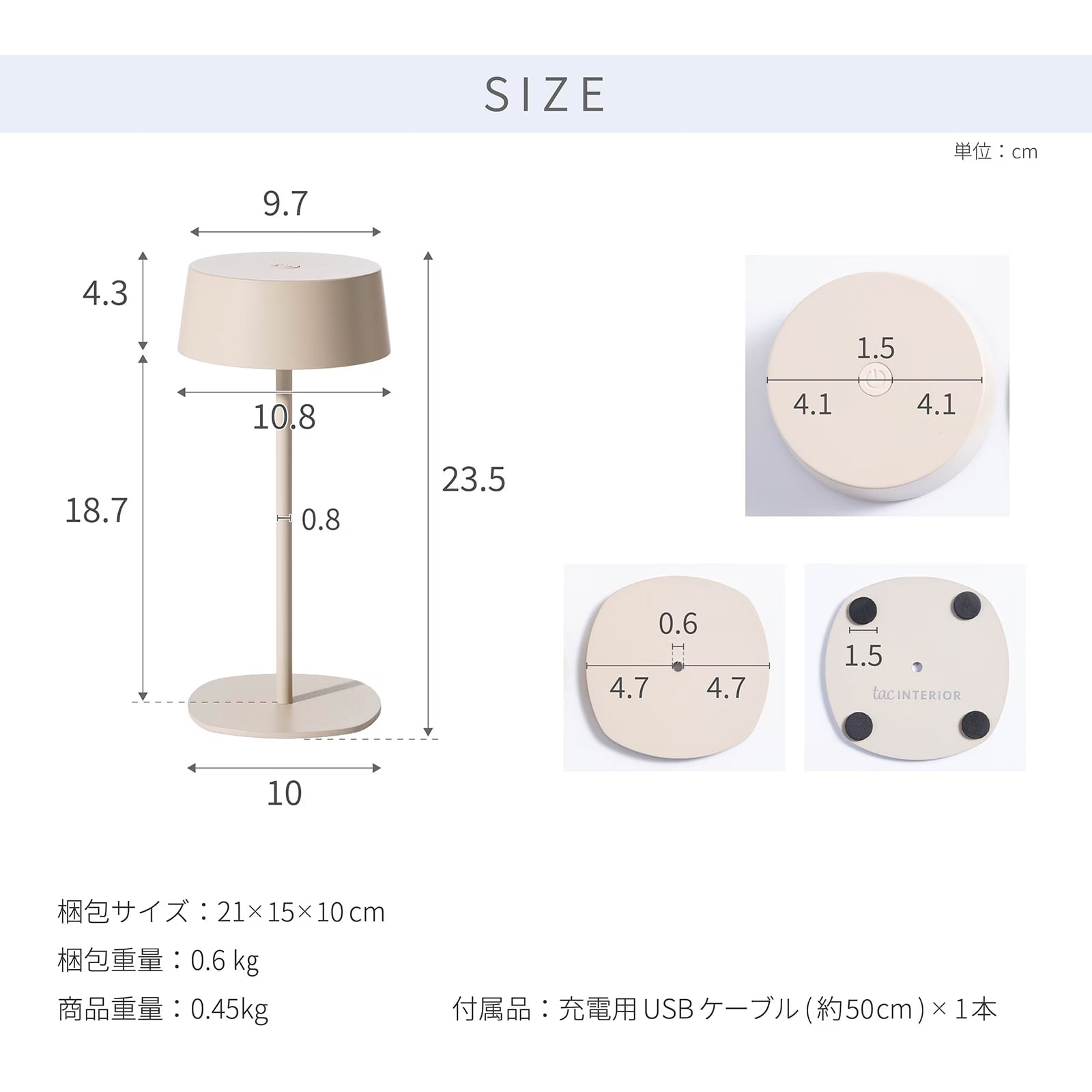 幅10.8×奥行10.8×高さ23.5cm(0.45kg)