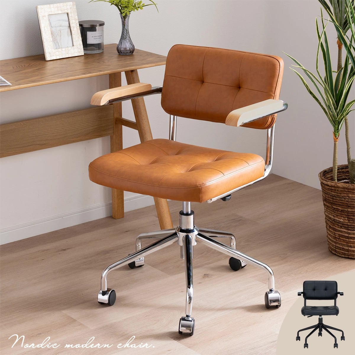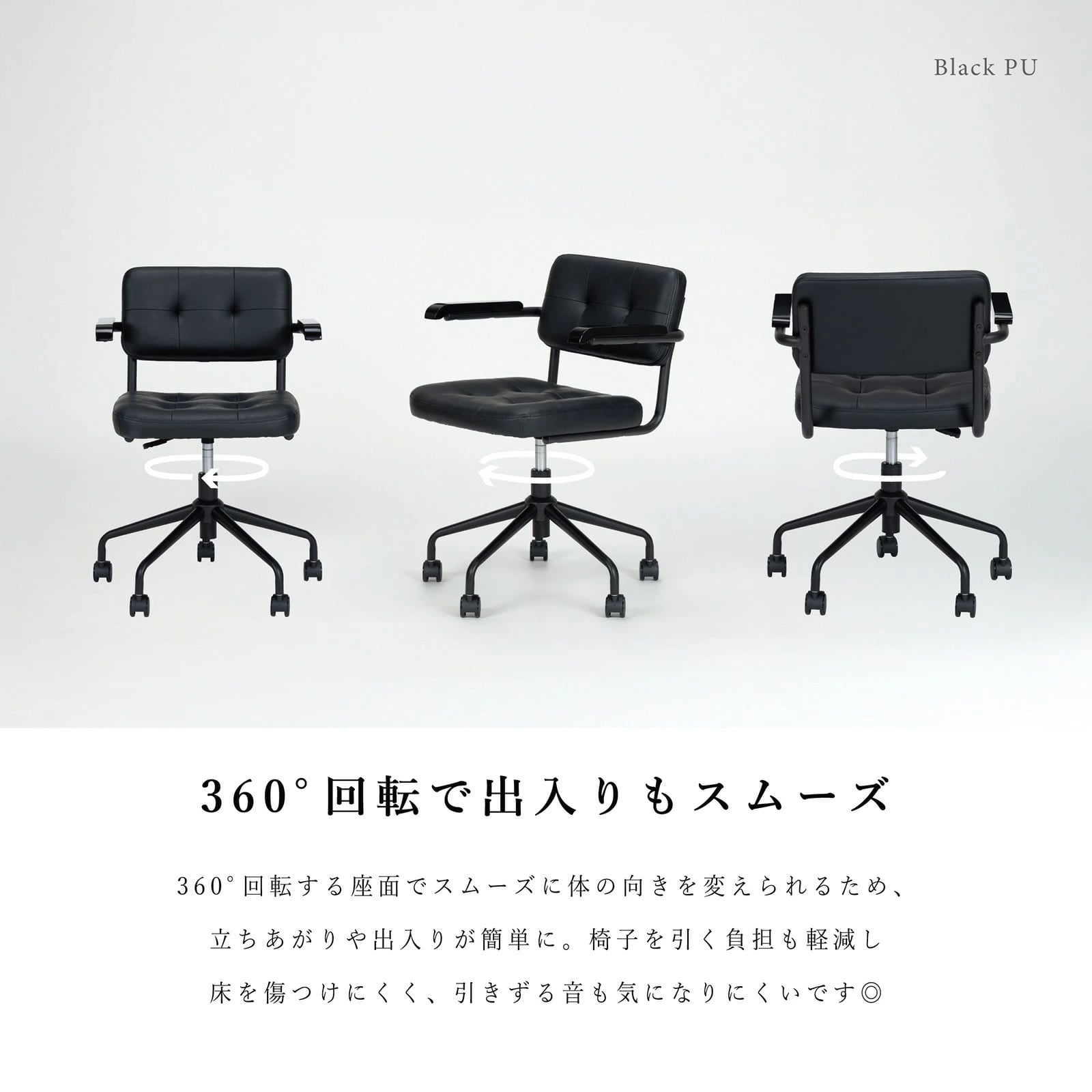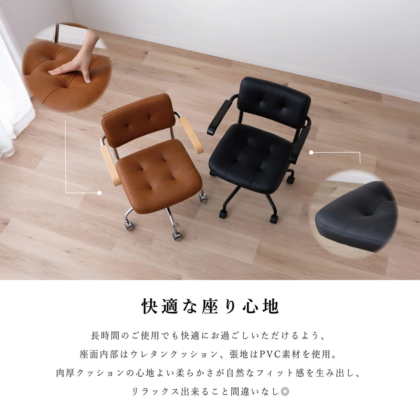 【10%OFFコード:F420】 回転チェア 幅58.5cm 昇降式 デスクチェア ラタン 肘付き オフィス PVC キャスター 一人暮らし gs0010