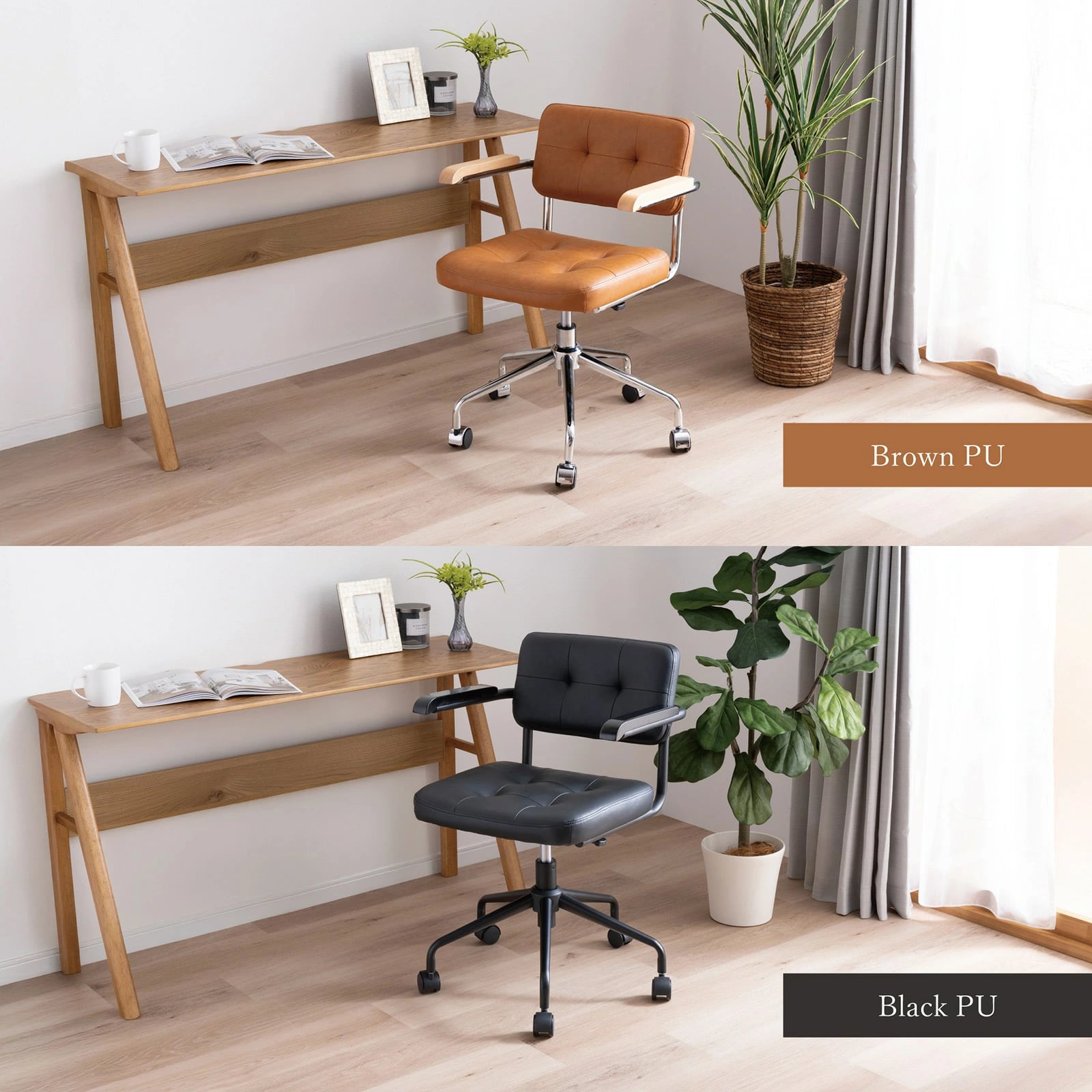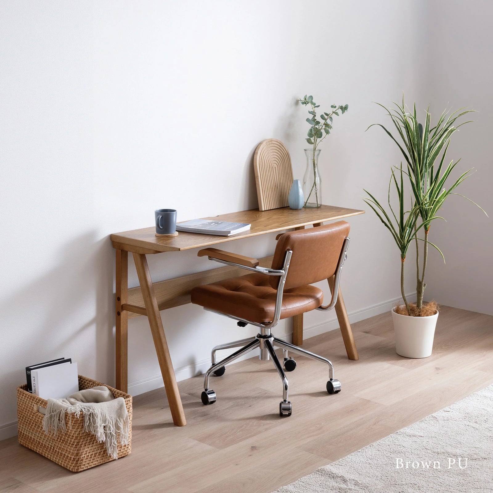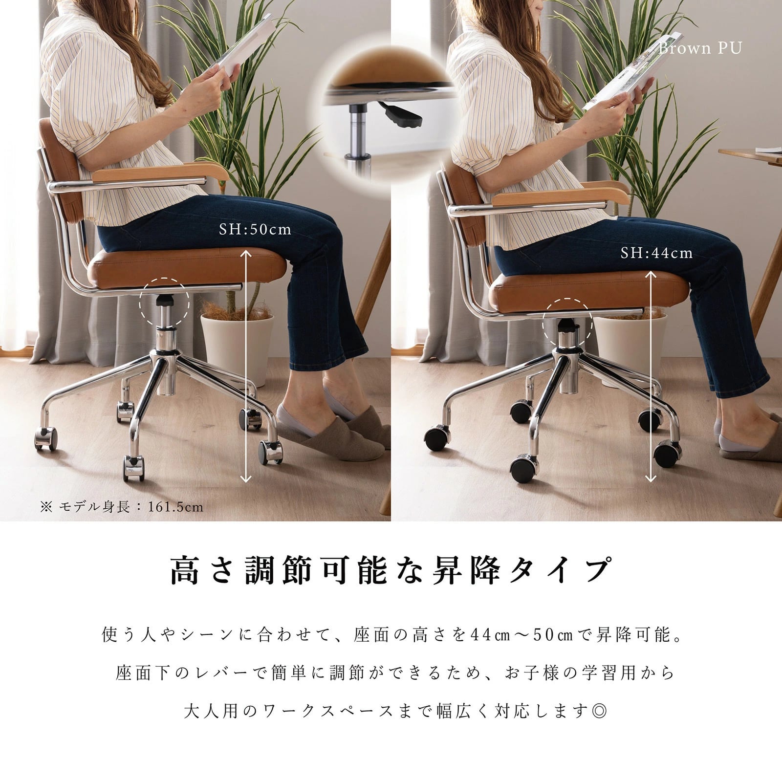 【10%OFFコード:F420】 回転チェア 幅58.5cm 昇降式 デスクチェア ラタン 肘付き オフィス PVC キャスター 一人暮らし gs0010