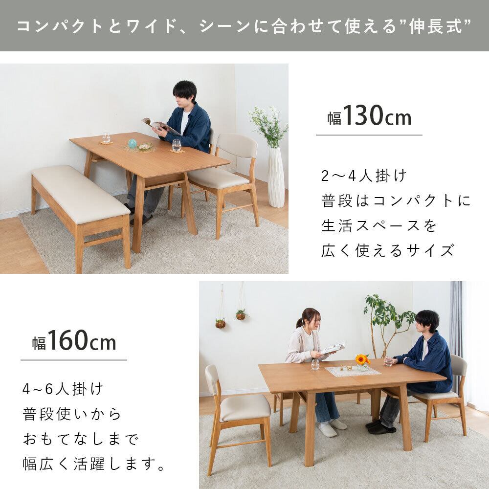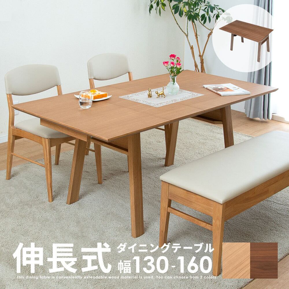 【10%OFFコード:F420】 ダイニングテーブル 2人 4人 幅130 160cm 伸長 ウォールナット オーク 突板 北欧 省スペース sg0812