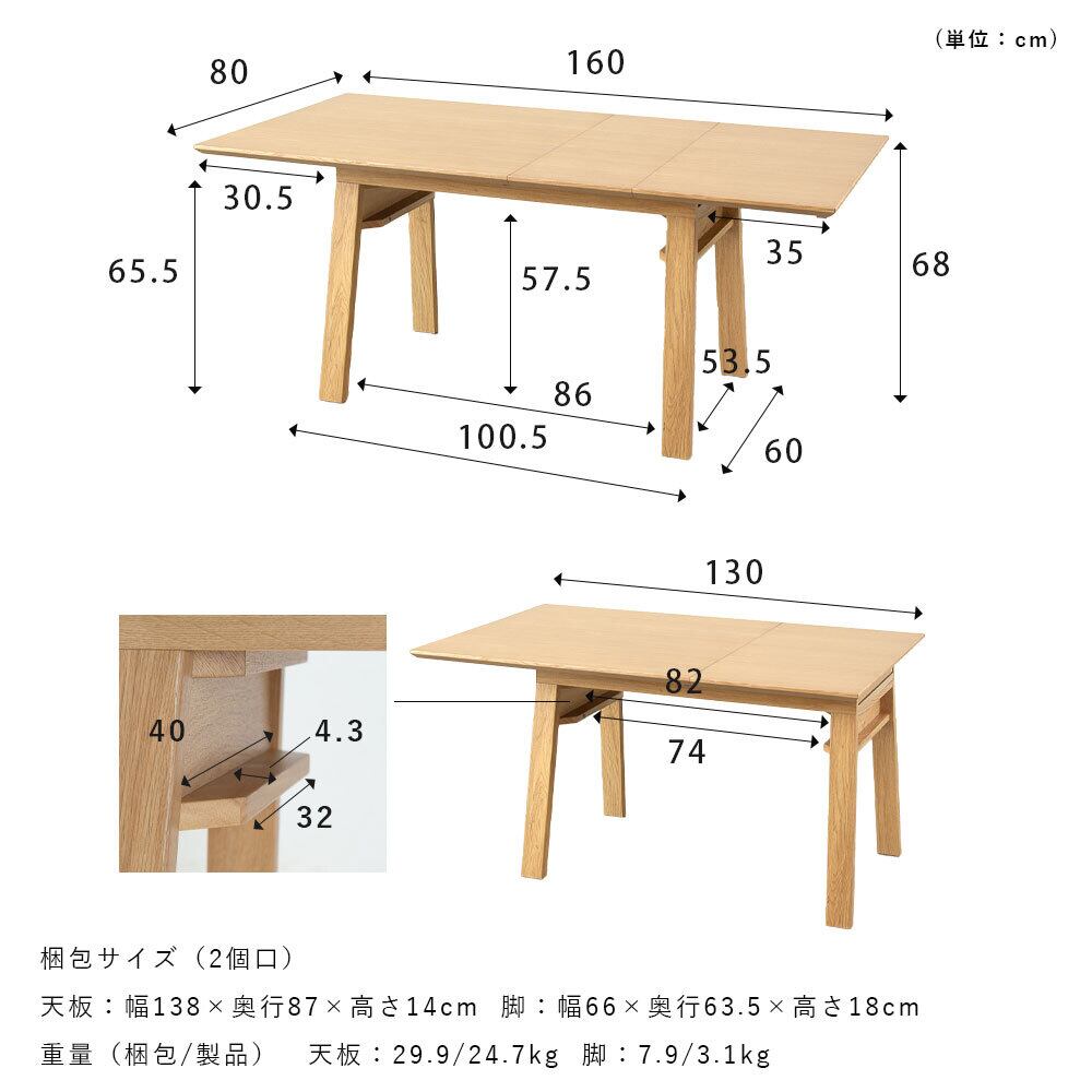 幅130/160cm×奥行き80cm×高さ68cm(幕板まで57.5cm)(27.8kg)