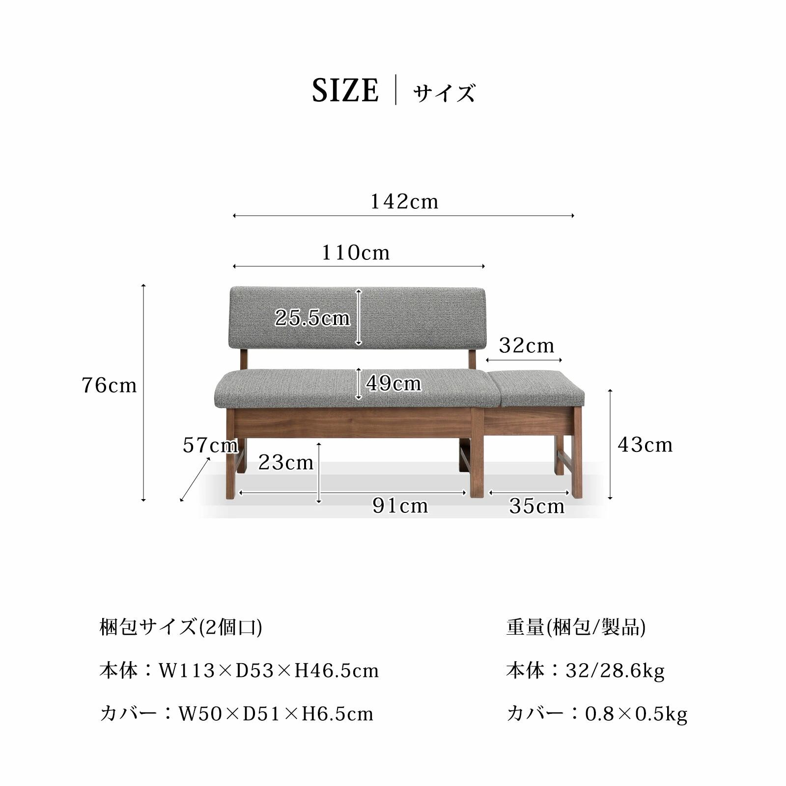 幅110/142cm×奥行き57cm×高さ43cm(29.1kg)
