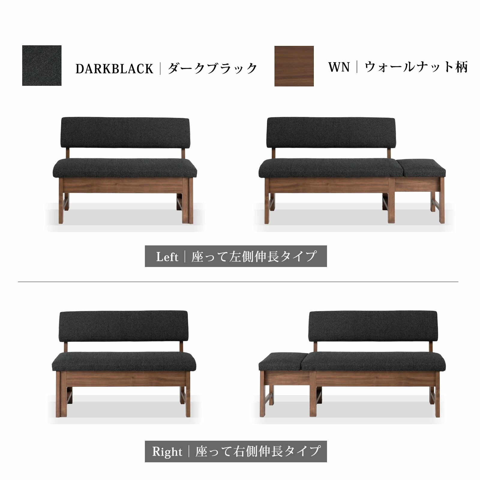 【10%OFFコード:F420】 ダイニングベンチ 幅110 142cm 伸長 2人 3人 オーク ウォールナット 強化紙 sg0814