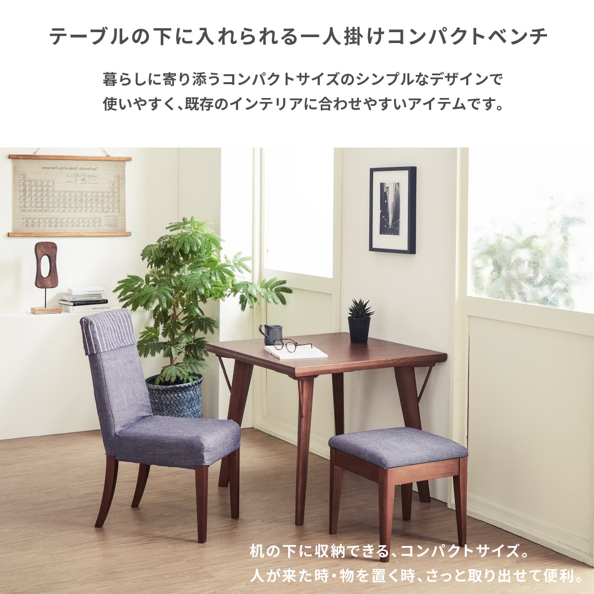 テーブルの下に収納出来る、コンパクトサイズの一人掛け用ベンチです。