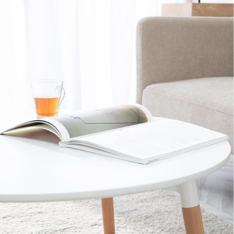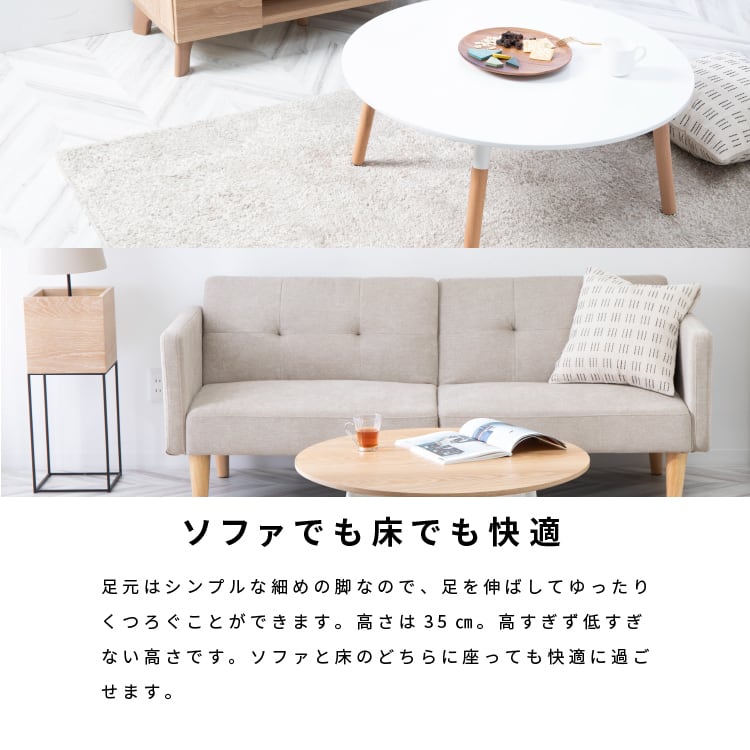 お部屋を明るく見せるマットなホワイト天板、あたたかみをプラスするナチュラルな木目天板。シンプルなデザインはお手持ちのソファにも合わせやすいこと間違いなしです。