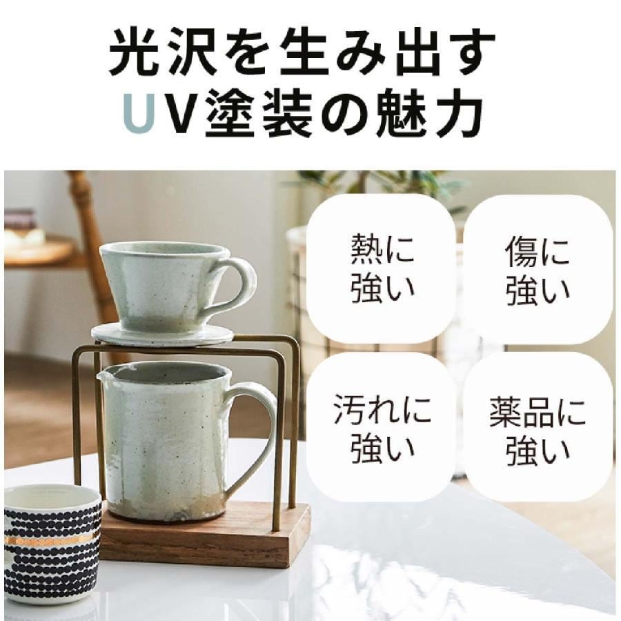 飽きの来ないシンプルなデザインで、天板はUVコーティング仕様での光沢感が高級感も感じさせます。