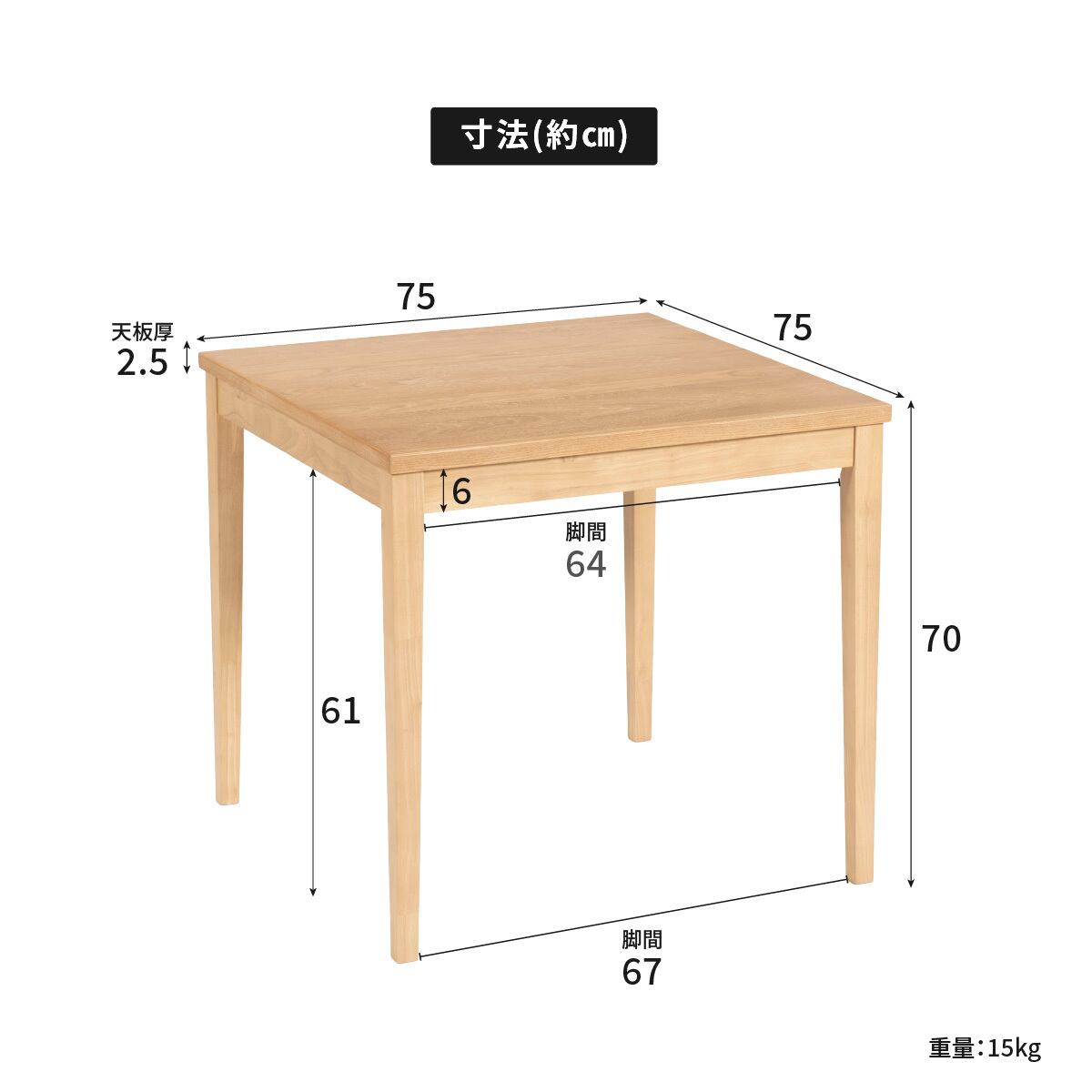 北欧 ダイニングテーブル 2人用 正方形 ダイニングテーブル 木製 オーク 天然木 75cm 75 高さ70cm テーブル 75センチ おしゃれ 単品 ホワイトオーク 木 幅75cm コンパクト 食卓テーブル tac2056