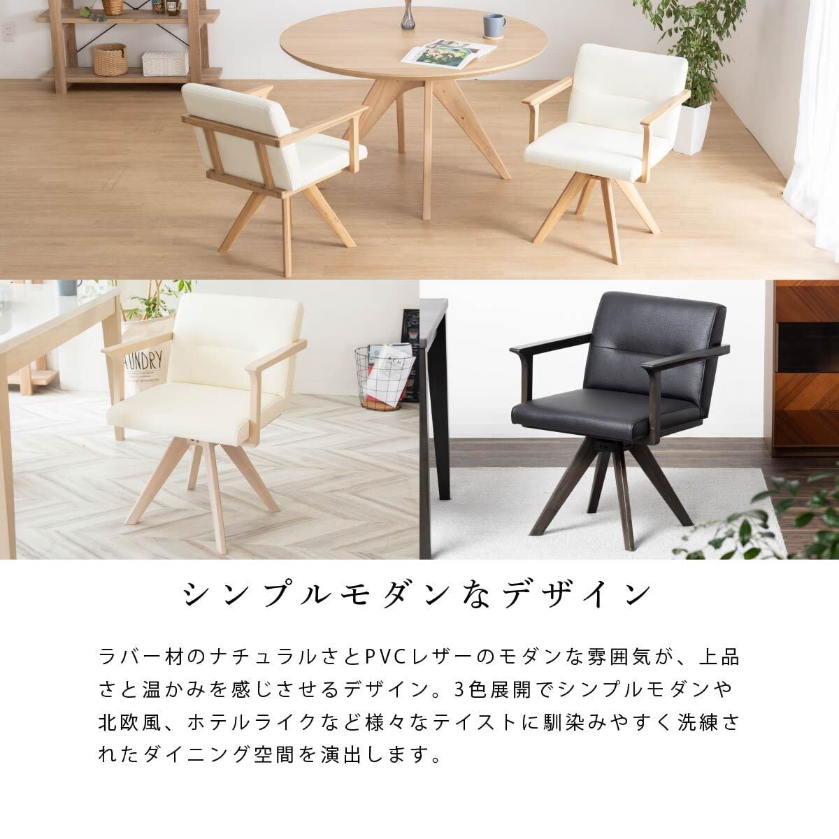 ダイニングチェア 回転 肘付 おしゃれ 北欧 回転チェア 一人掛け ダイニング チェア 木製 天然木 合皮 PVCレザー 回転椅子 肘付き 高齢者 アームチェア 食卓椅子 1人用 リビング ラバー材 4009