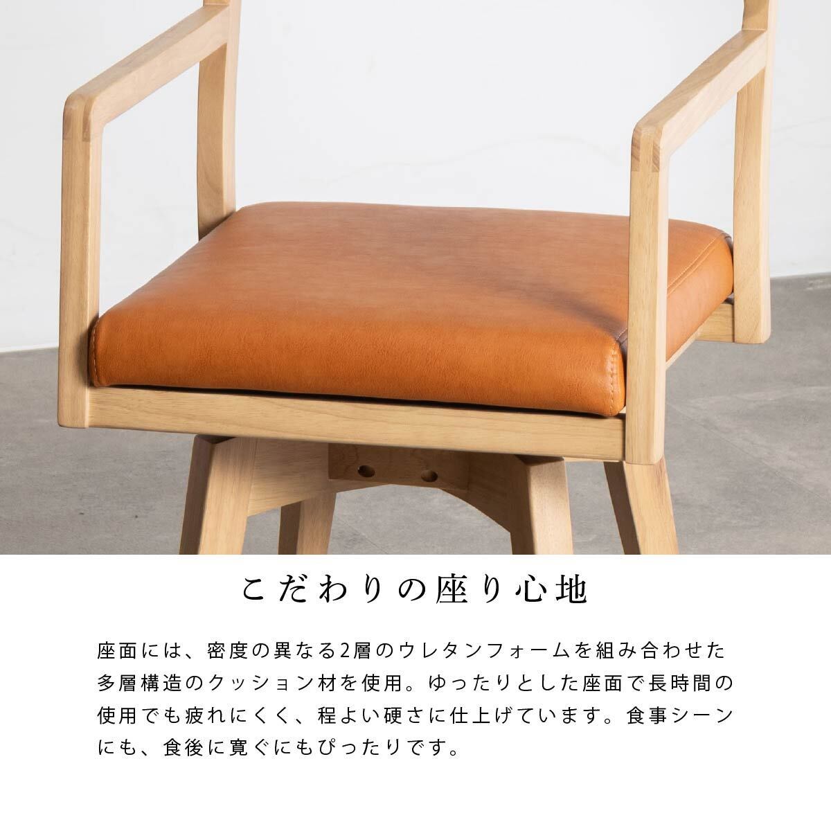 【カバー付き】ダイニングチェア 回転 肘付 おしゃれ 北欧 回転チェア 一人掛け ダイニング チェア 木製 天然木 合皮 PVCレザー 回転椅子 肘付き 高齢者 アームチェア 食卓椅子 1人用 リビング ラバー材 4017