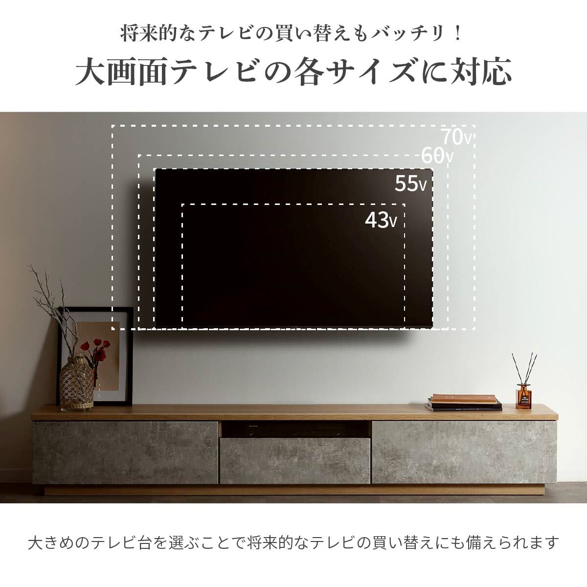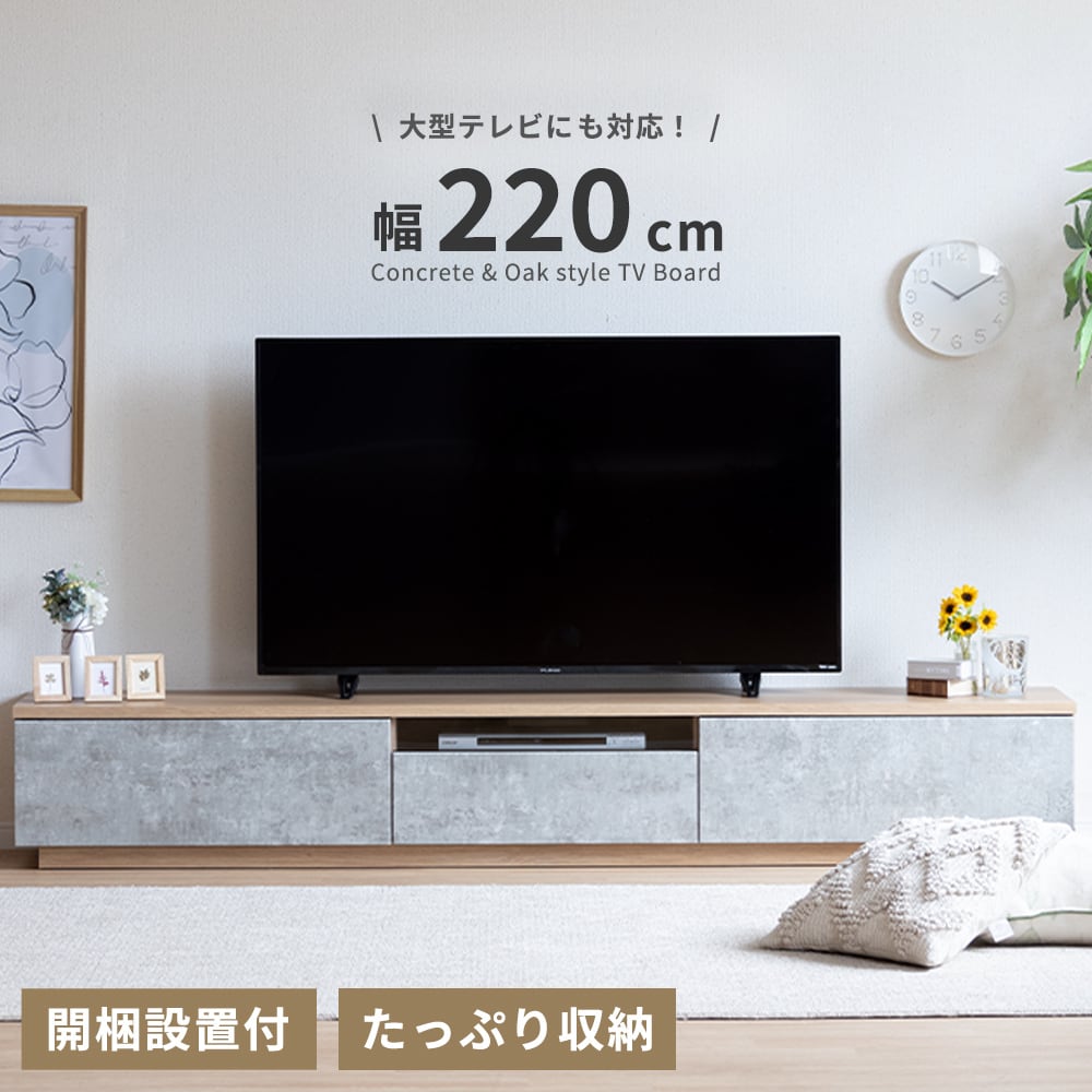 テレビ台 220cm ローボード テレビボード コンクリート調 220 おしゃれ TVボード 完成品 セラミック調 シンプル モダン リビング収納 赤外線 リモコン操作 大容量 収納 引き出し グレー 灰 tac6038
