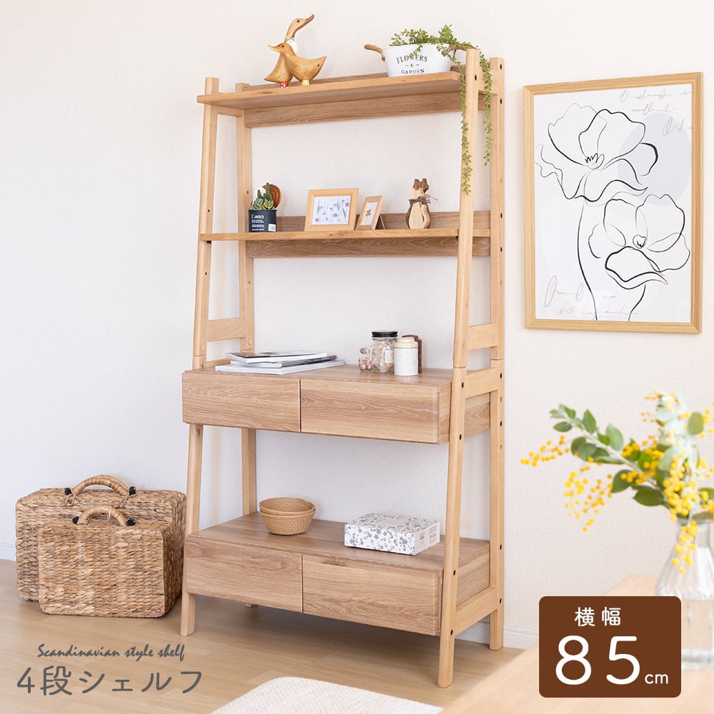 オープンシェルフ 85cm 幅 ハイタイプ 収納棚 おしゃれ 北欧 リビング 引き出し 収納 オープンラック 木製 スリム ラック 棚 4段 ディスプレイラック 本棚 飾り棚 マガジンラック シェルフ シンプル 大容量 本 CD 子供部屋 書斎 収納家具 7014