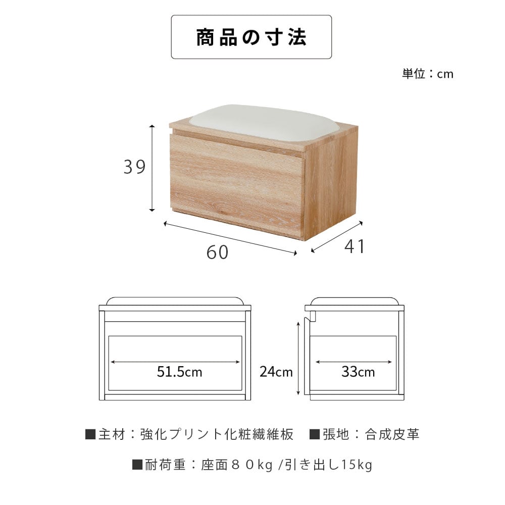 【15%OFFクーポンコード:F320】ベンチ 収納 木製 完成品 おしゃれ 玄関 ローチェスト スリム 北欧 ホワイト オーク ウォールナット 材 座れる おもちゃ箱 リビング ダイニング シンプル コンパクト 引き出し クッション 幅 60 高さ 39 奥行 41 1段 タンス 腰掛け 7001