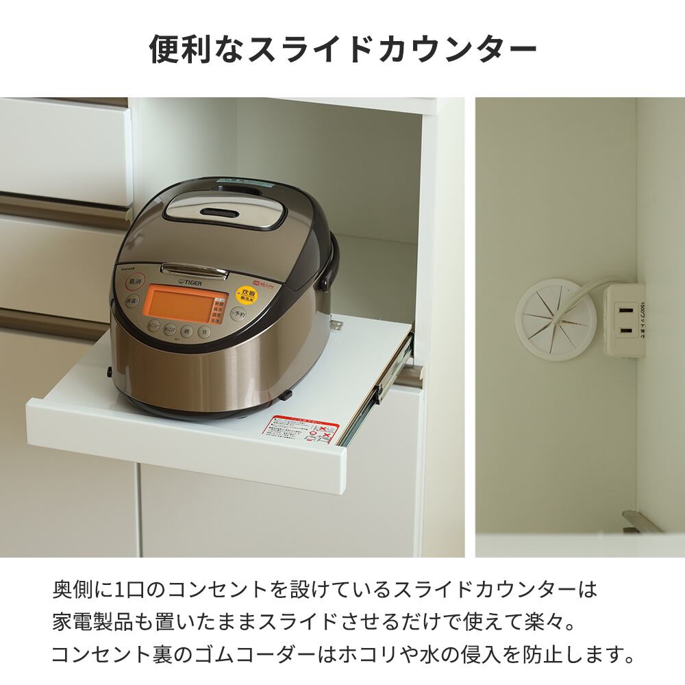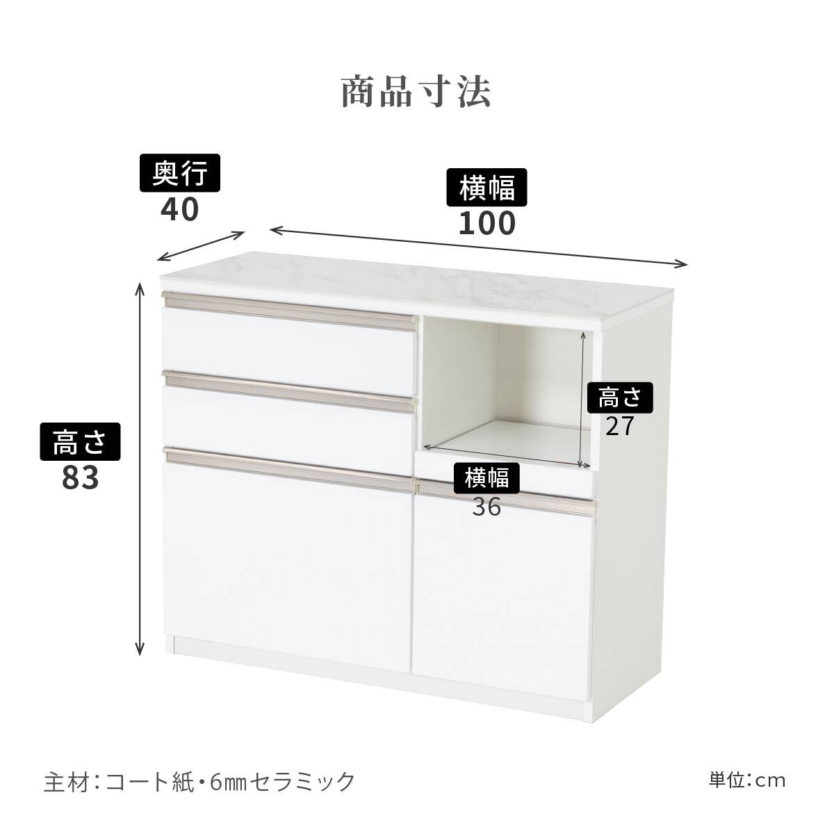 【廃盤】キッチンカウンター テーブル 100 大理石風 セラミック 天板 ホワイト レンジ台 おしゃれ 奥行40cm 高さ83cm コンセント付き モイス付き 引き出し スライドカウンター キッチン収納 炊飯器 キッチンカウンター 収納 白 キッチン 作業台 8010