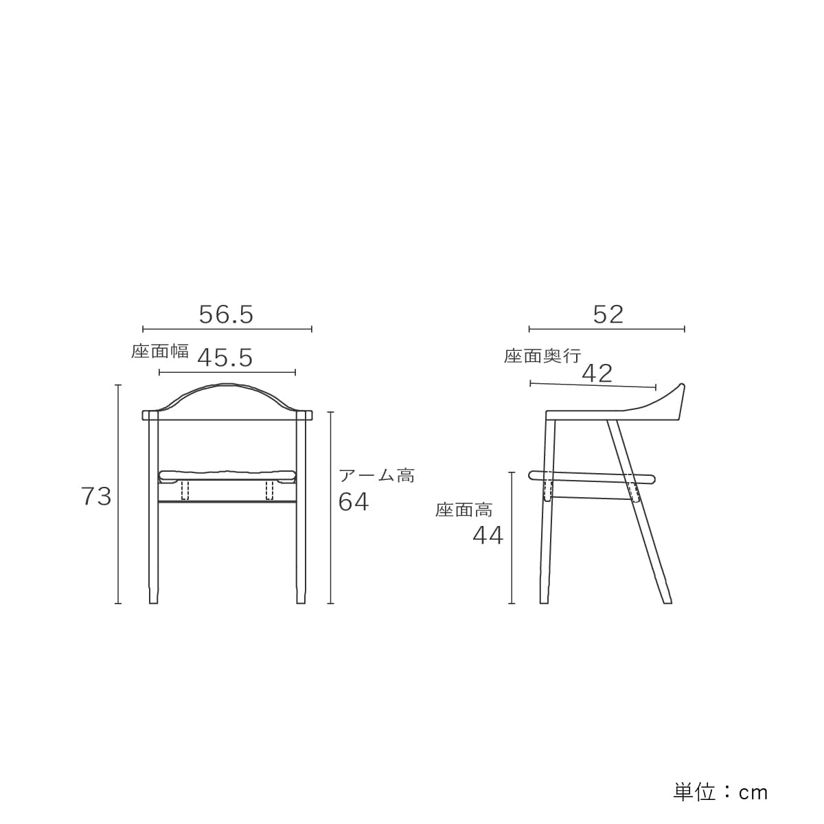 ■サイズ 幅56.5×奥行52×高さ73cm(SH44/AH64cm)