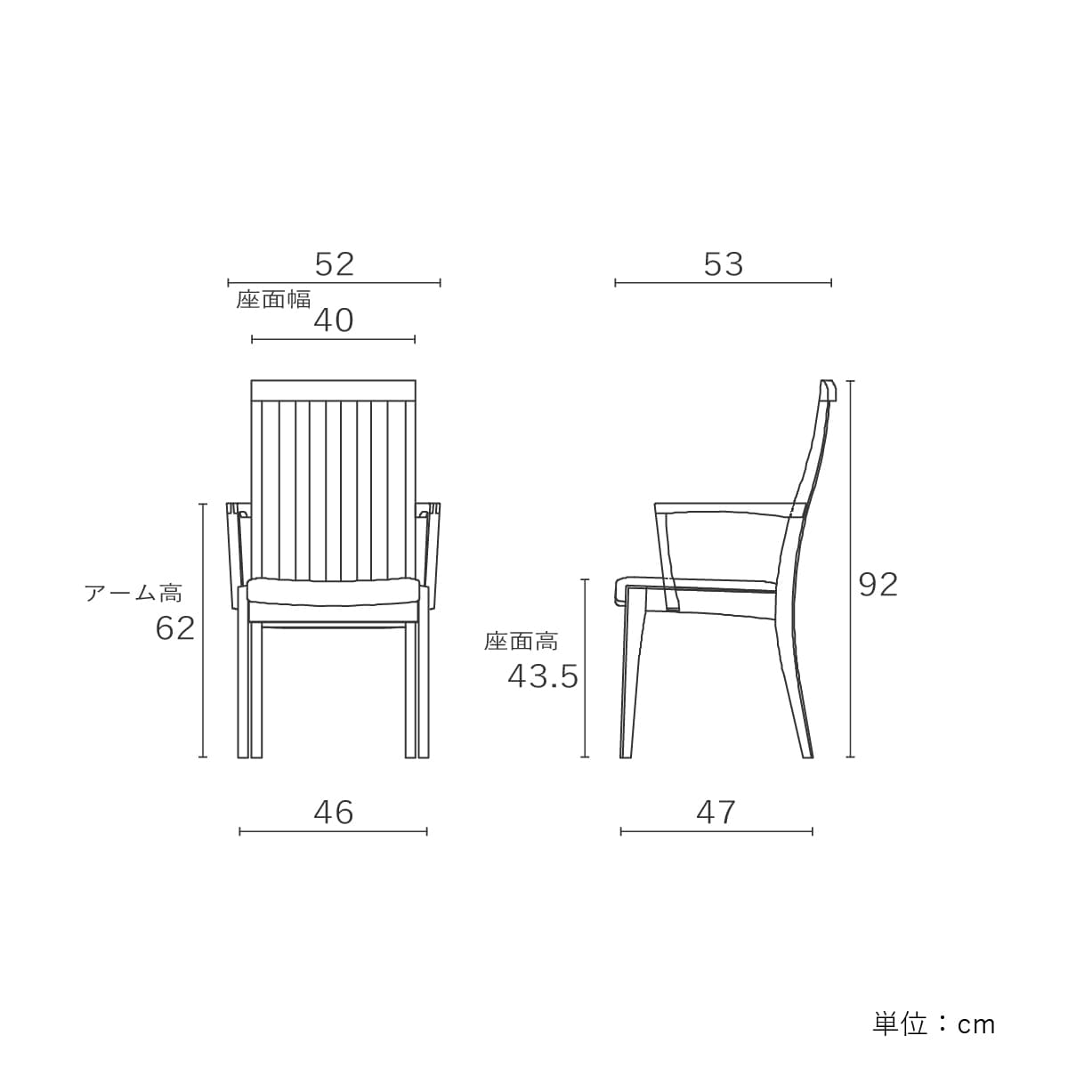 ■サイズ 幅52×奥行53×高さ92cm(座面高43.5cm/アーム高62cm)