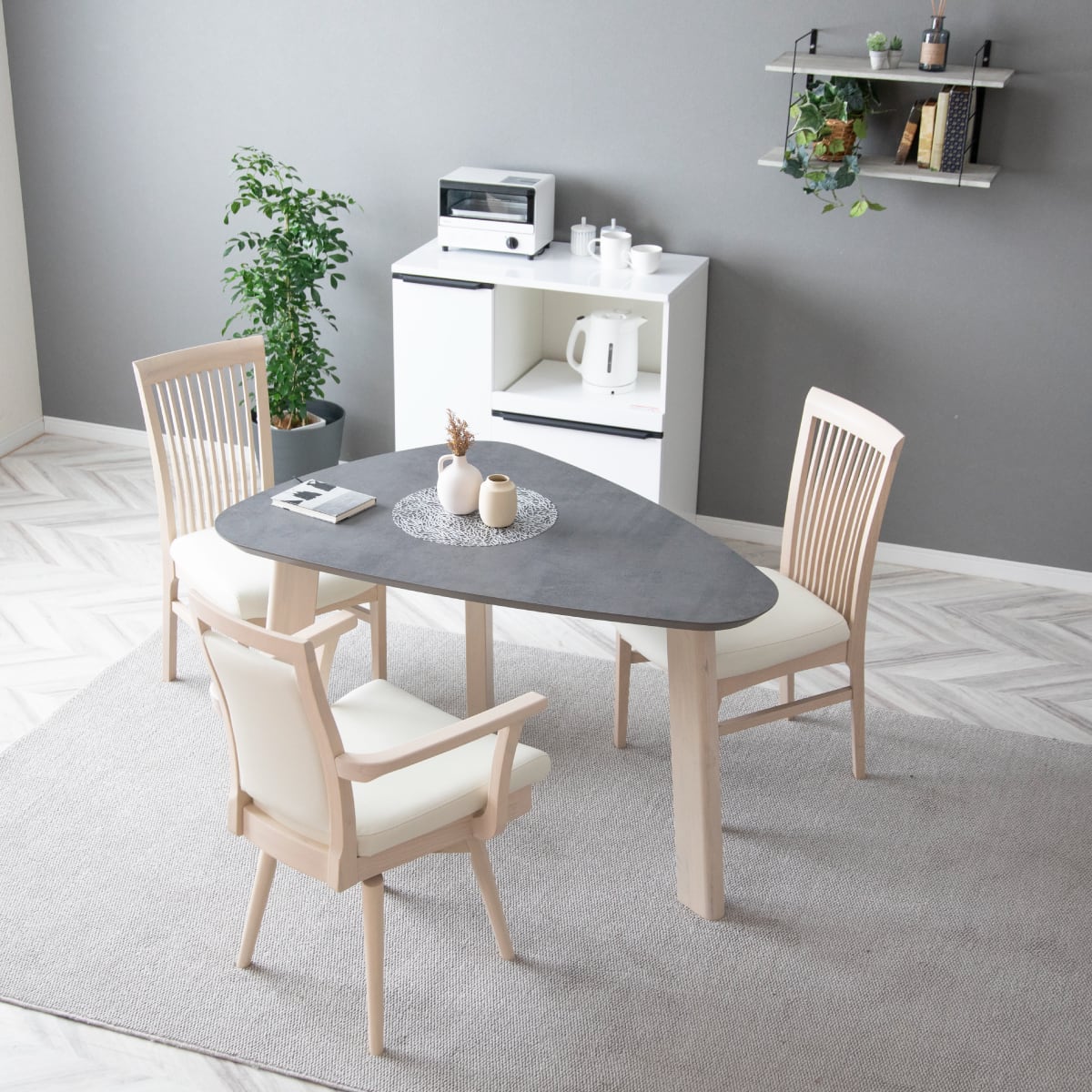 変形 ダイニングテーブル テーブル リビング おしゃれ 北欧 メラミン天板 白 ホワイト 木製 木目調 白木目 三角 角丸形 光沢 光沢仕上げ UV塗装 北欧風 カフェ 幅 130 cm 高さ 70 cm 2065