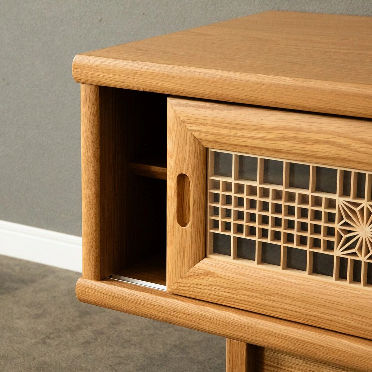 テレビ台 テレビボード ローボード 幅220 組子 組子細工 角麻 リビング 収納 和モダン 和 和風 TV台 220cm 220センチ 木製 天然木 オーク ベージュ 大型 高級 ce0024