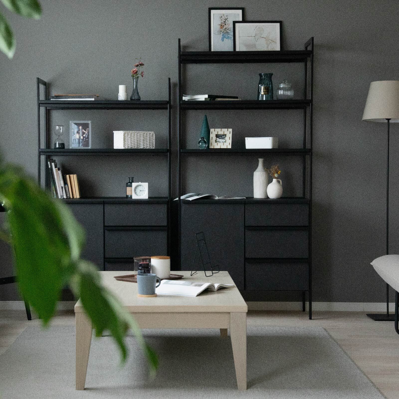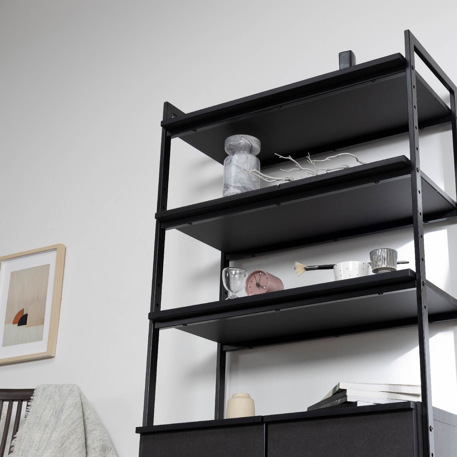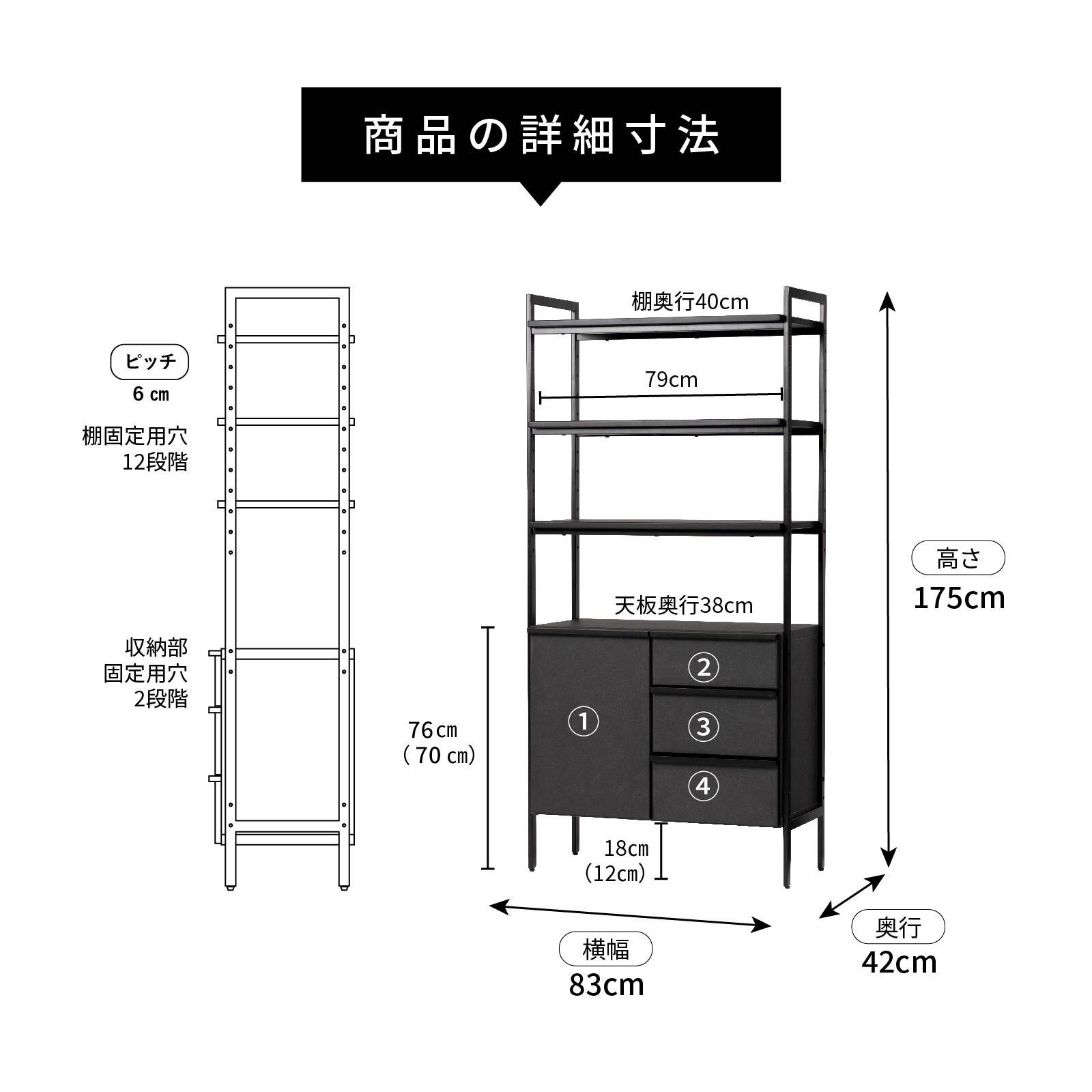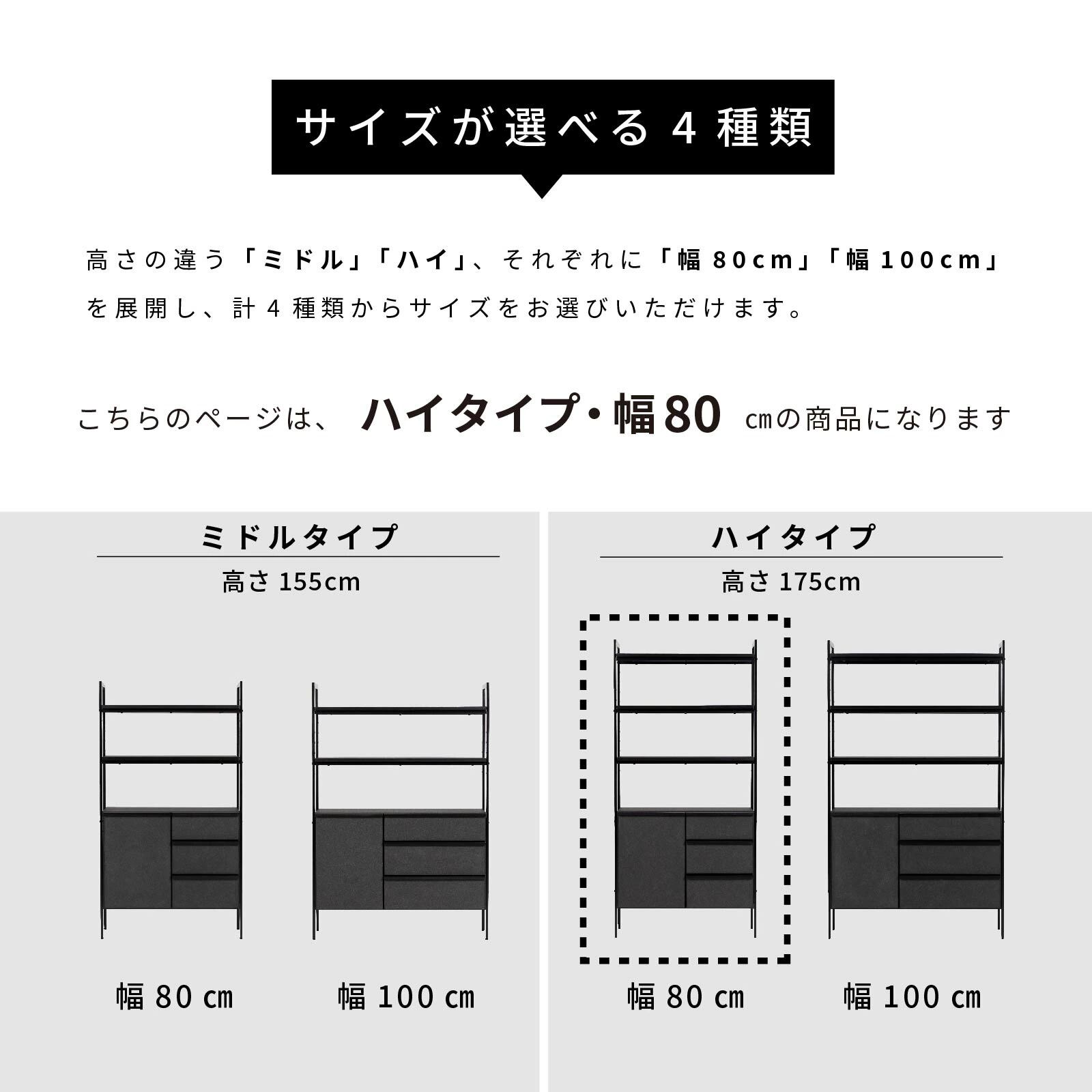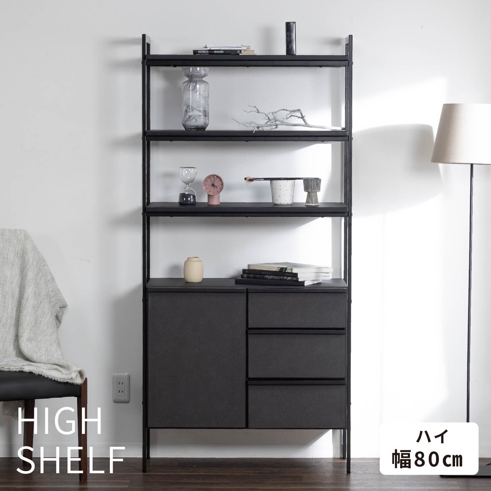 シェルフ オープンシェルフ 80cm 幅 ハイタイプ 収納棚 おしゃれ 北欧 リビング 収納 セラミック調 ブラック 黒 オープンラック 木製 アイアン ラック 棚 4段 スチール 本棚 飾り棚 マガジンラック 大容量 本 CD 収納家具 tac7009