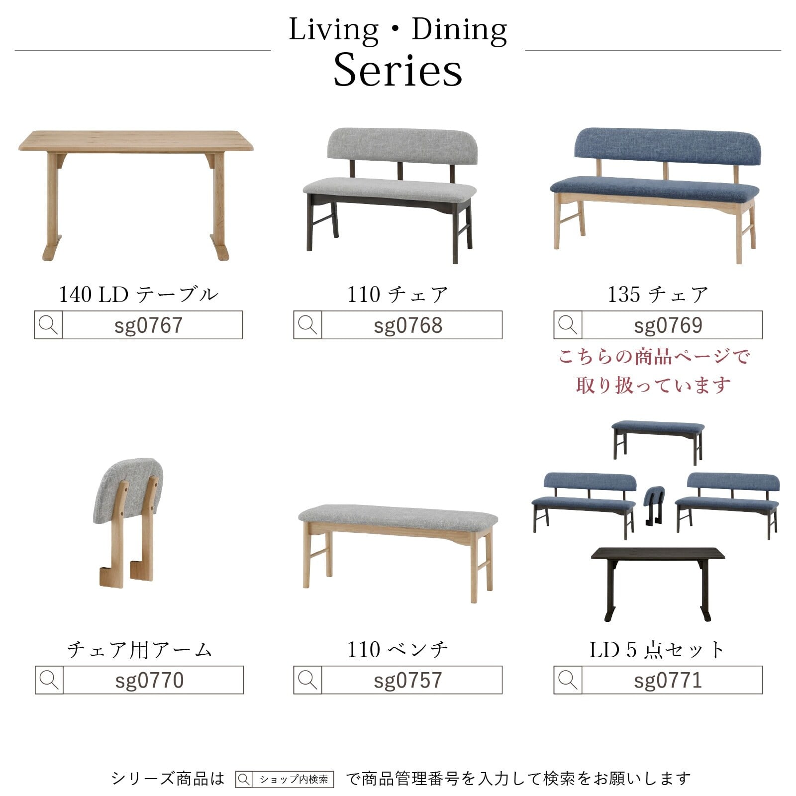 ダイニングチェア チェア 幅 135 cm ダイニングベンチ 本体完成品 おしゃれ 北欧 ナチュラル ラバーウッド 無垢材 ベージュ ブラック ダークグレージュ ファブリック カバーリング グレー ブルー ダイニング カフェ モダン カントリー sg0769